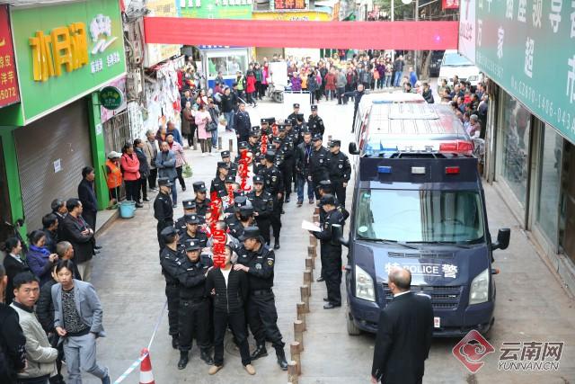 “好消息、大快人心的好消息,彝良法院今早要公开审理17条‘地头蛇’!”10月30日上午,彝良县一受害者奔走相告,向村邻传递着这一喜讯。当日上午九时,在彝良县人民法院可容纳200余名旁听群众的大法庭内,清脆的法槌响起,审判长宣布:将涉嫌抢劫、寻衅滋事、敲诈勒索犯罪的王某勇、何某红等17名被告人押上法庭。在全副武装警察的押解下,17名涉恶团伙成员被押进法庭,接受法律的公开审判。