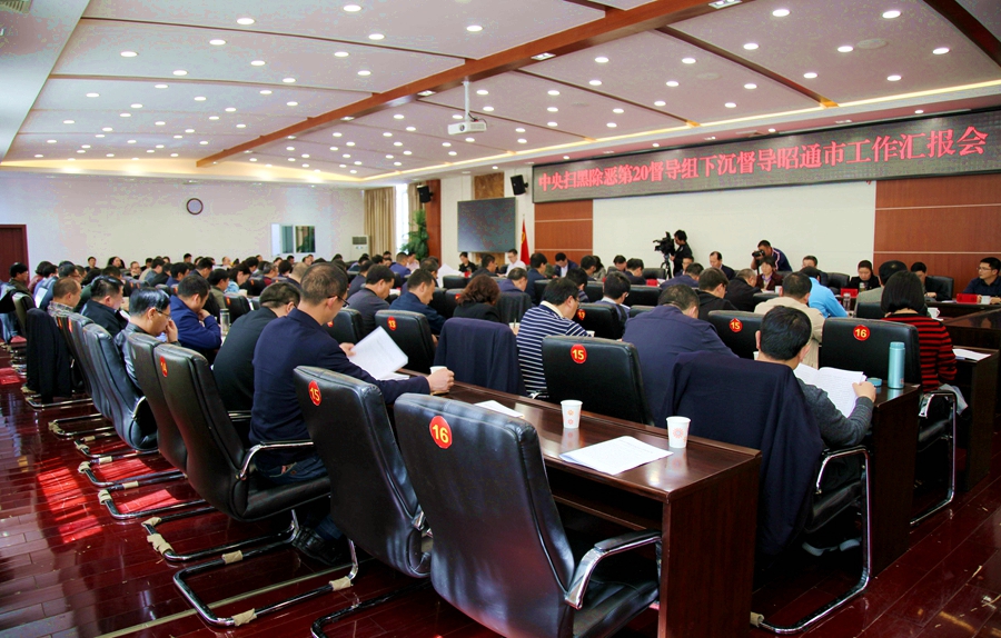 云南省配合督导员,昭通市委、市人大常委会、市政府、市政协主要领导及班子相关成员,昭通学院、市中级人民法院、市人民检察院主要领导,市扫黑除恶专项斗争领导小组成员单位主要负责同志参加汇报会。
