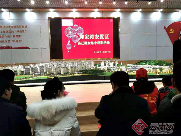 为让搬迁群众让搬迁群众尽快适应新环境,过上新生活,入住第一晚,安置区临时党工委(管委会)精心安排,组织首批住户在规划展示中心大厅集中观看爱国影片《战狼2》,为当日搬迁群众举办了一场特殊的“欢迎会”。会上,安置区临时党工委书记、鲁甸县委副书记、县委宣传部部长吴君尧,党工委委员宗波与搬迁群众齐聚一堂,共同观看影片,吴君尧发表了热情洋溢的讲话。