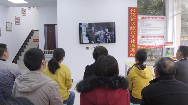 4月8日,兴汶社区二十多名社区党员干部围坐在电视机前专心致志地观看电影《开国大典》,党员干部们追忆中华民族百年屈辱的历史,深刻感受党领导中国人民从站起来,到富起来,再到强起来的百年奋斗光辉历程。