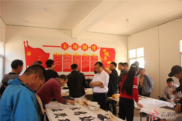 4月29日,昭通市广播电视局在挂钩村——大关县悦乐镇新寨村开展“我为群众办实事”实践活动,邀请昭通著名书画家走进新寨村堡山二期安置点,开展“书画进农村”活动。组织广播电视系统党员干部、专业技术骨干进村入户,开展家电维修服务活动。举行新寨村民书画室挂牌仪式,将“送书画进农村、扬文化润民心”作为长期的工作来抓,更多更好地服务群众。