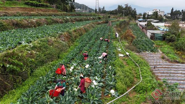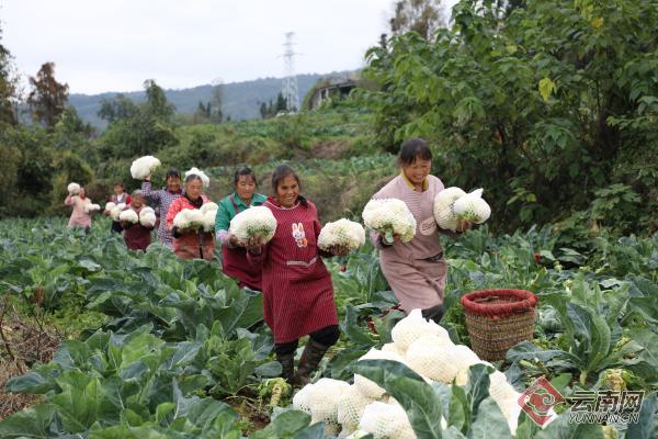 原标题:溪洛渡街道干河村:花菜丰收采摘忙 “订单”蔬菜不愁销