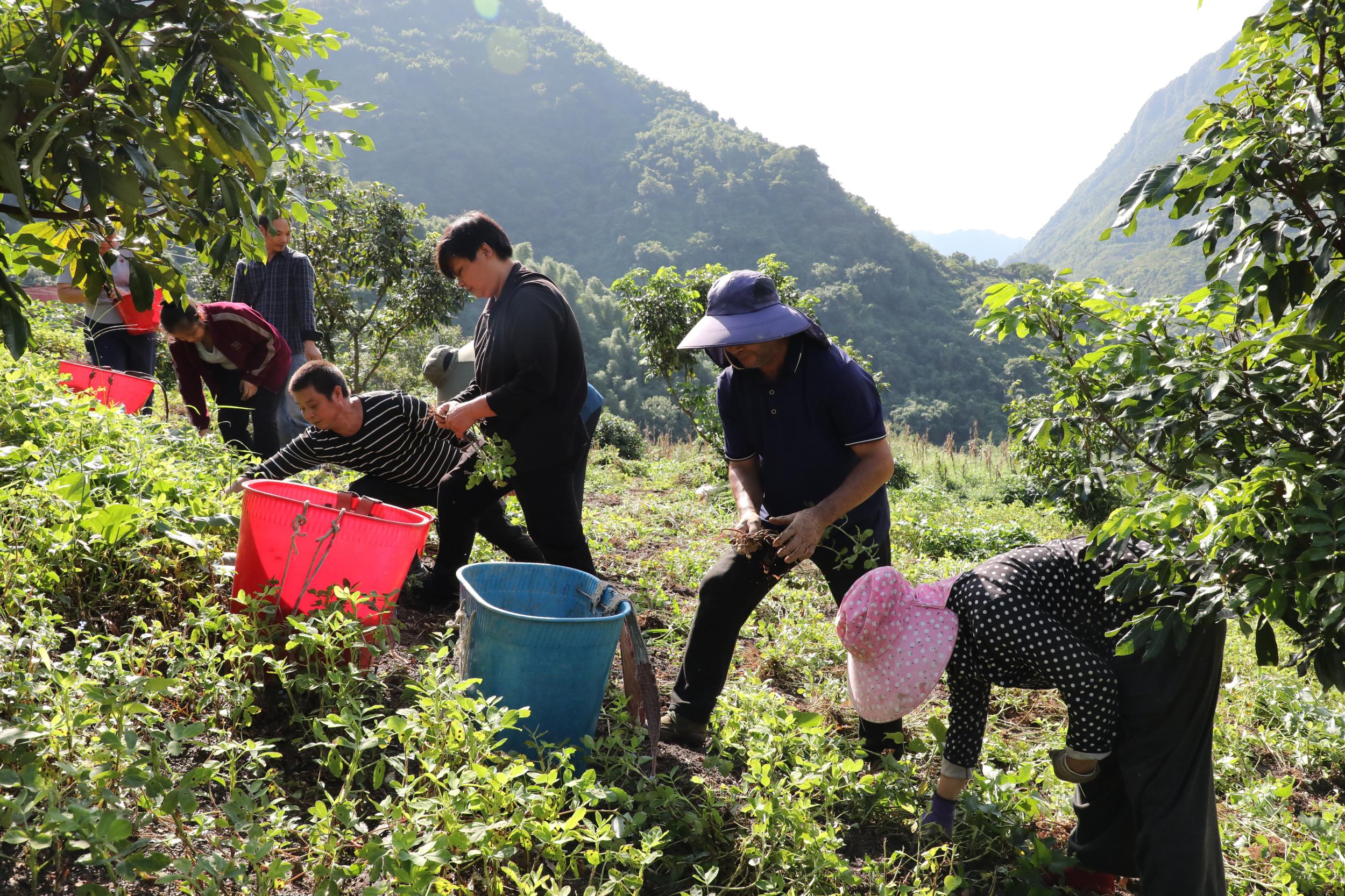 金秋时节,昭通市绥江县南岸镇团结村1000余亩花生迎来丰收季。当地农民正趁着晴好天气忙着采收花生。摘果、装袋、搬运、晾晒……一派丰收喜悦的景象。