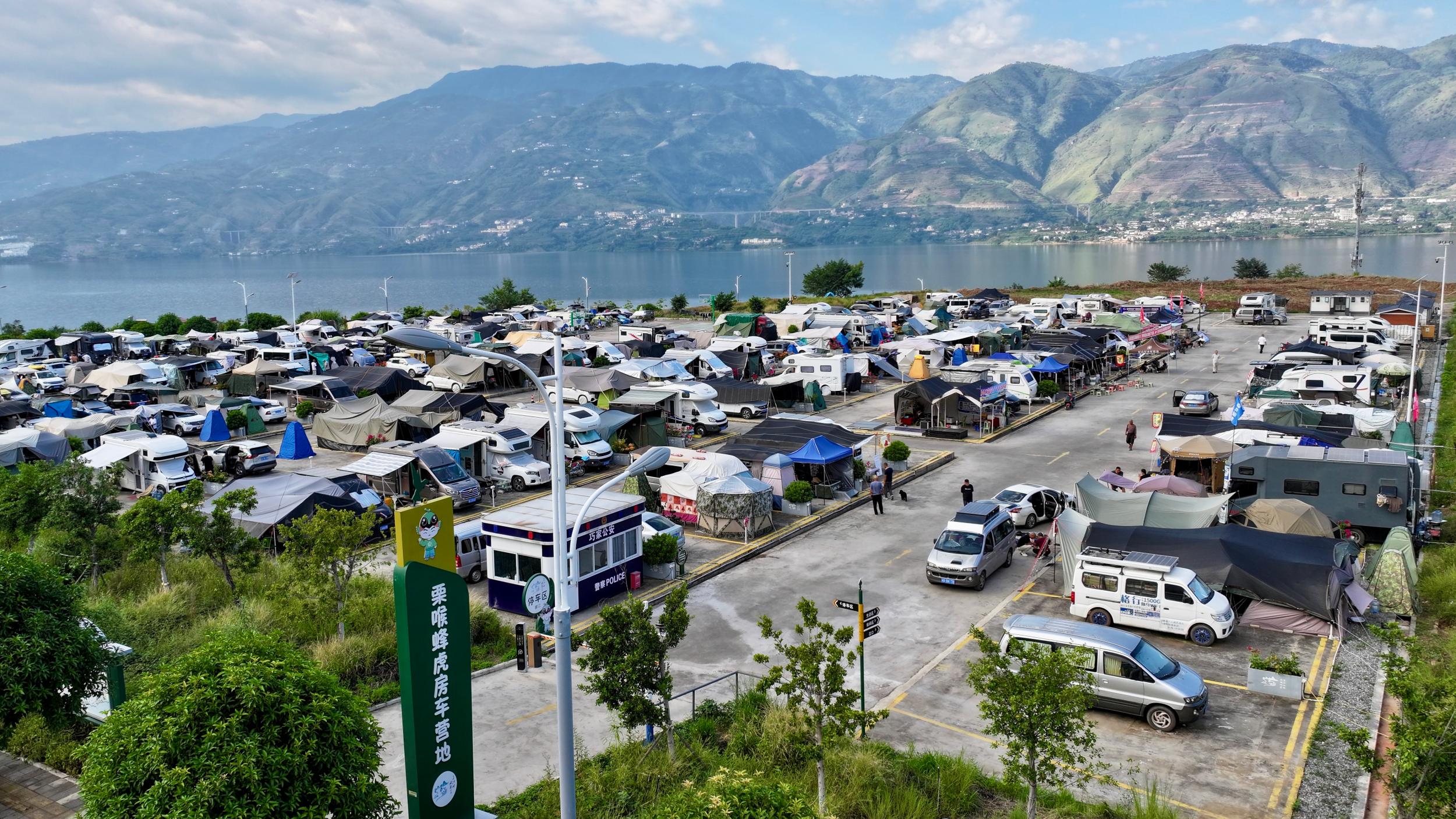 “国庆节前,房车营地车还不多,现在找个车位得绕好几圈。”房车旅居游客魏长立站在栗喉蜂虎营地入口感慨道。国庆假期以来,营地热度显著攀升,不少晚到的游客只能在周边辗转寻找空位。令他印象深刻的是当地政府的投入:“3号营地很受欢迎,我看到地面都是用压路机重新处理的,巧家县对房车游客的贴心服务很暖心。”