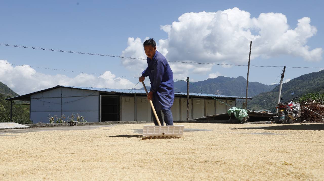 村民晾晒稻谷