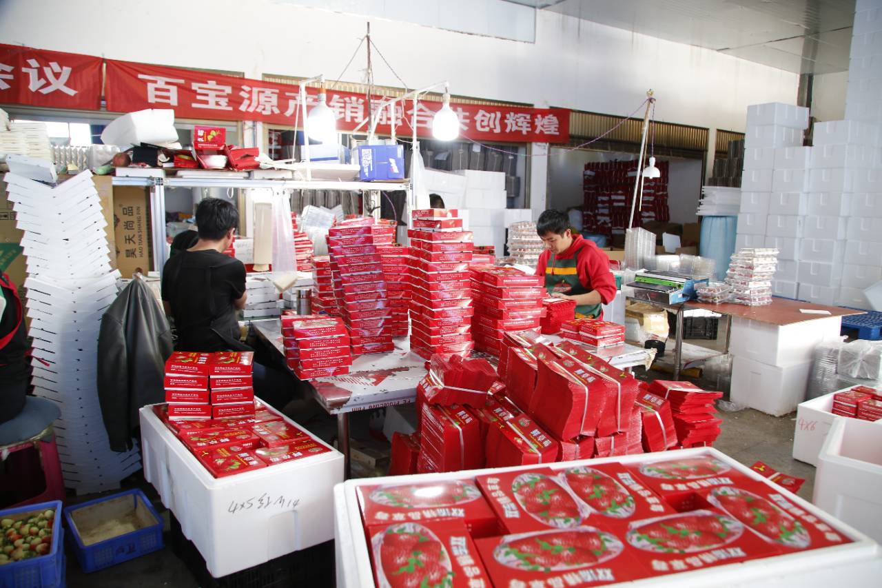 在巧家县马树镇草莓交易中心,工人们正在对刚收购的草莓进行分拣、包装。一颗颗草莓被精心包裹后,即将发往全国各地。“我们公司从 5月份开始收购草莓,每天大概能收3至5吨,到目前为止已经收购了1000吨左右。每天收购的草莓,我们都是包装完以后当即发往到上海、重庆、北京等大城市。今年受天气和市场需求等因素影响,价格比往年高一些。”百宝源(北京)农业科技有限公司财务玉苏普·艾力介绍,今年巧家草莓市场行情看涨。