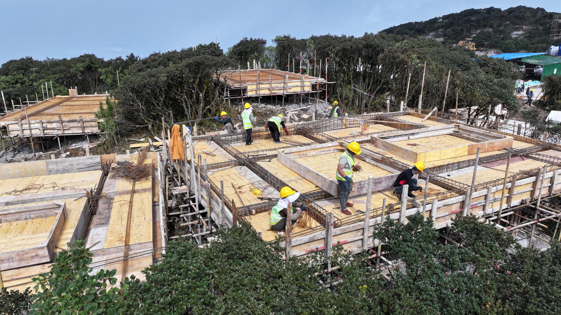 项目建设现场,大型机械轰鸣作业,施工人员忙着搬钢筋、支模。大关县翠屏建设工程有限责任公司施工负责人介绍,一期项目主体工程包含29栋民宿、2个便民服务中心、1个生态停车场、1个农特产品展销中心及1个文创产品创作展示孵化园。