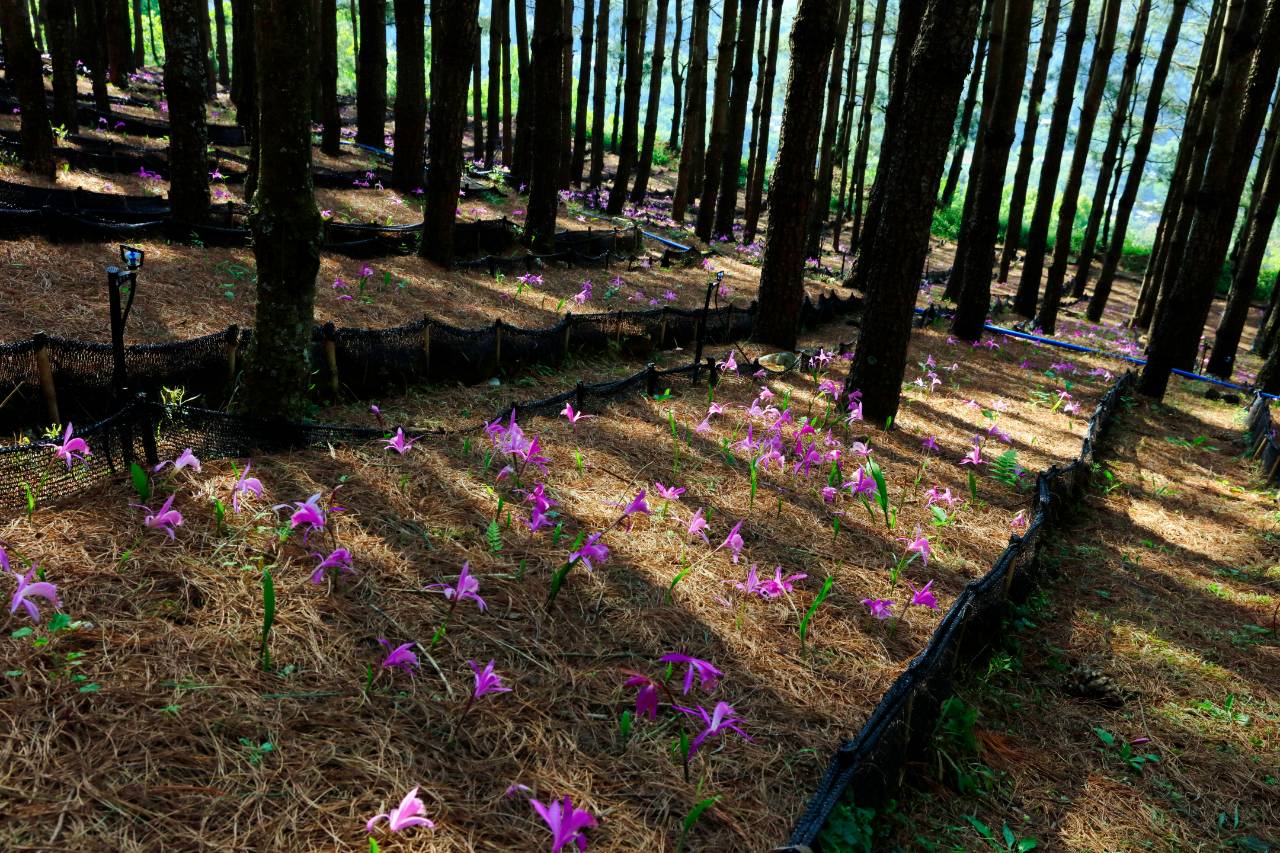《松树林下花朵盛开的独蒜兰》。温树全 摄