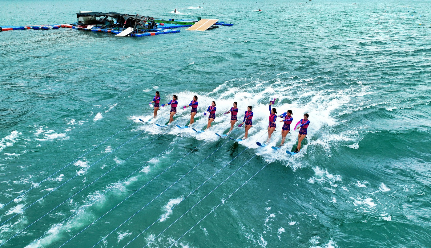 “水上摩托艇太刺激了,腾空时像在飞!玩累了坐皮划艇赏江景,‘体育+旅游’玩法多,一次玩不够!”四川宜宾游客王先生兴奋地分享。这里水上飞龙、降落伞、动力三角翼等项目齐全,游客能尽享“金沙江里游、长江水上漂、川滇空中飞”的乐趣,乐园也因此赢得“中国西部水上户外运动天堂”的美誉;夜幕下,文艺演出准时开演,截至目前已连续举办4届龙舟文化旅游节、3届金沙江原创音乐节等活动,还有啤酒狂欢节、旗袍秀,让游客沉浸式感受金沙江文化。