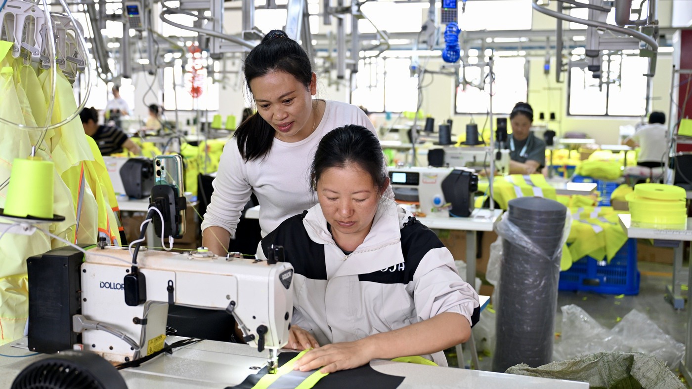 “服装衣领要把它拉平,慢慢就得心应手了……”39岁的向梅是众多“凤还巢”中的一员。2021年,向梅返回家乡到云南助嘉科技有限公司工作,凭借多年在浙江务工积累的经验,从普通员工成长为车间组长。目前,她在公司主要负责做样衣,同时向员工传授基础的缝制工艺。“在外边打拼多年,学到一些技术,回乡就业不仅照顾老人小孩,工资也和外面相差无几,实现了挣钱、顾家两不误。”向梅说。