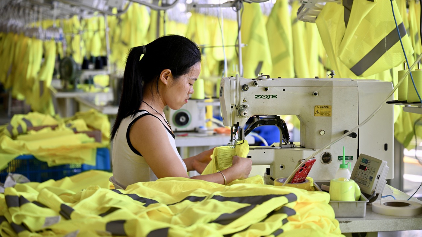 走进镇雄县呢噜坪纺织服装产业园,云南助嘉科技有限公司的生产车间里一派繁忙景象,工人们正在流水线上熟练地裁剪、缝制、熨烫,一件件反光背心经过十多道工序后逐渐成型,机器运转声与工人交流声交织在一起。