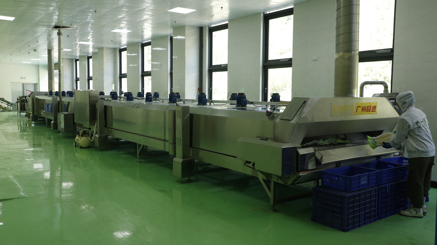 在木杆镇的连片竹林里,竹农刚采收的方竹鲜笋正被送往村集体经济公司——云南竹一无二食品科技有限责任公司的生产车间。车间内,新引进的竹笋加工生产线正高速运转,数十名工人流水作业,将新鲜采收的秋笋进行清洗、杀青、脱衣、分拣、包装、速冻等工序,液氮罐释放出的白色雾气中,竹笋瞬间被锁住鲜嫩,在冻库储存,等待打包后发往全国各地。