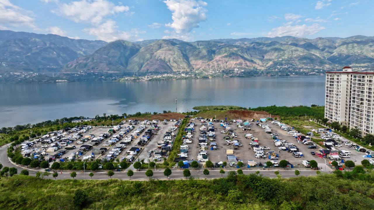 水脉赋能,市井生活更添烟火气。凭借独特的湖滨风光与温润气候,巧家赢得了“西部小三亚”的美誉。在房车营地,来自全国各地的旅居者围坐共享美食,巧家特色小吃与小碗红糖的醇厚风味交织在一起;手风琴声悠悠响起,音符中藏满天南地北的故事。数据显示,2025年中秋国庆假期累计接待游客20.93万人次,实现旅游花费1.9亿元。从青海远道而来的游客谢占香称赞道:“这里阳光明媚、气候宜人,人文风情也很浓厚。我们计划停留10多天,好好体验一番,为巧家点赞!”