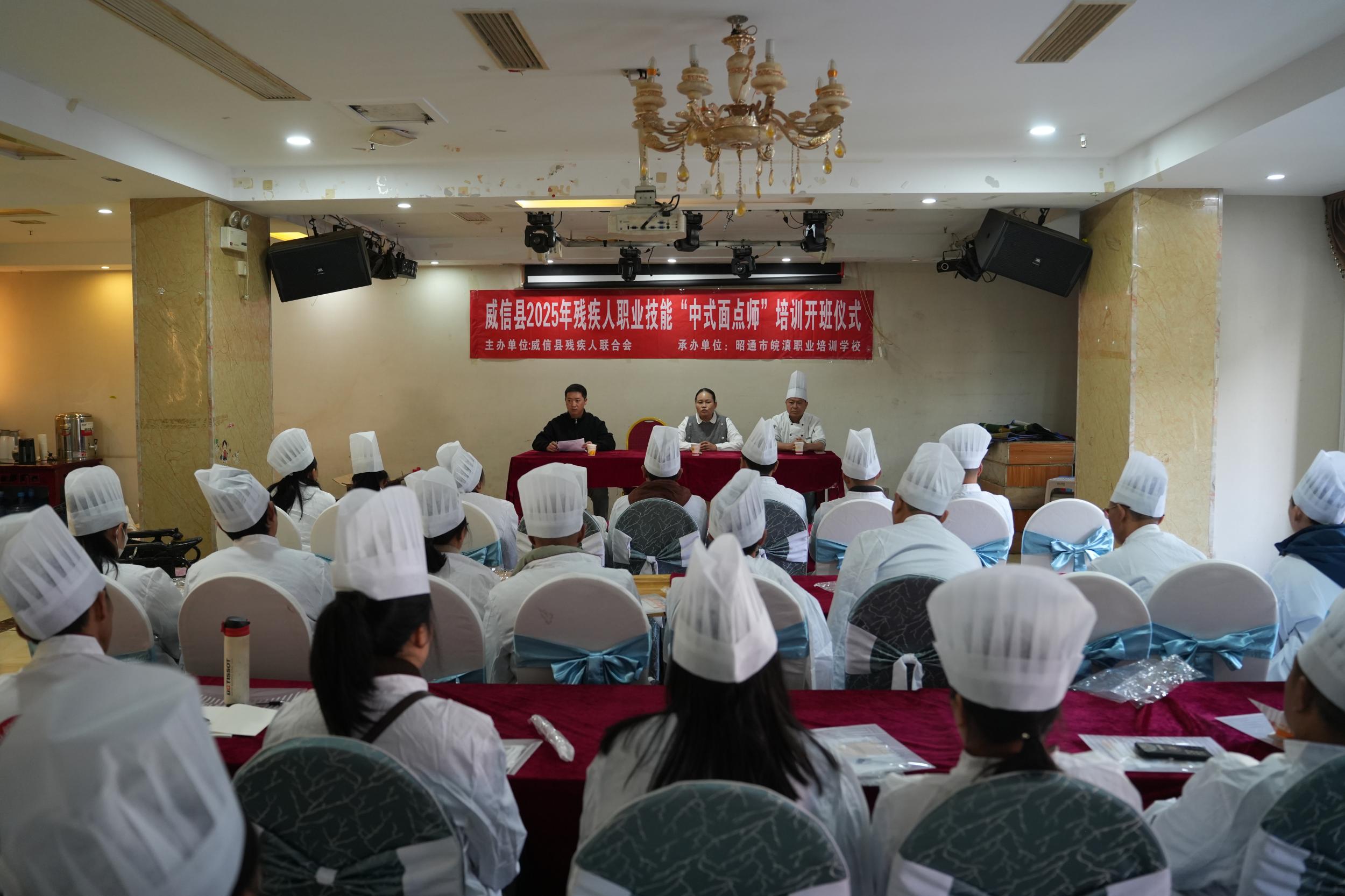 结合残疾人就业需求与市场就业特点,威信县精心策划为期10天的“中式面点师”职业技能培训班,吸引30余名有就业意愿的残疾人及部分重度残疾人家属参与。同时,邀请中式面点师技师授课,采用“理论讲解+实操演练”的教学模式,从面粉选购、面团揉制到馅料调配、成品蒸制,系统教授全套面点制作技能。