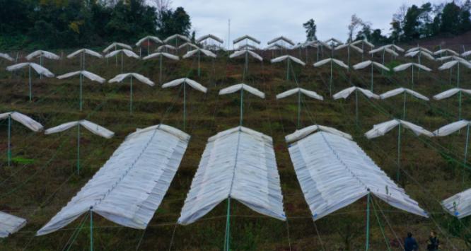 在胜利村万春水果种植专业合作社,80多亩果园间建起手动伸缩式防雨棚。果家周万春拉动收放线,一张巨大的透光遮雨布在树梢上方徐徐展开。“防雨棚能防止高温暴热和低温冻害引起的落花落果,防冰雹效果也特别好。”农技专家介绍。