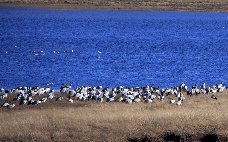 从11月13日10只黑颈鹤作为“先头部队”飞抵云南昭通大山包开始,大山包黑颈鹤国家级自然保护区越冬候鸟迁徙潮就持续不断,截至11月19日,虽受大雾等影响,但保护区工作人员已监测到黑颈鹤的数量已突破300只。与此同时,斑头雁、赤麻鸭等各类水鸟也纷纷前来越冬,总数超过1000只。