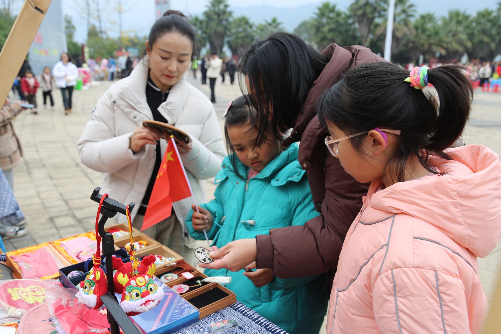 除了精彩纷呈的“村晚”节目,现场还开展了“村村好物”民俗集市活动。摊位上摆满了竹笋、天麻、茶叶、鸡蛋、蜂蜜、小花生等农特产品,还有独具特色的民族手工艺品、文创纪念品以及各种美食小吃,如炸洋芋、米粉、苞谷粑粑等。摊主的叫卖声、吆喝声此起彼伏,吸引了不少游客驻足选购。