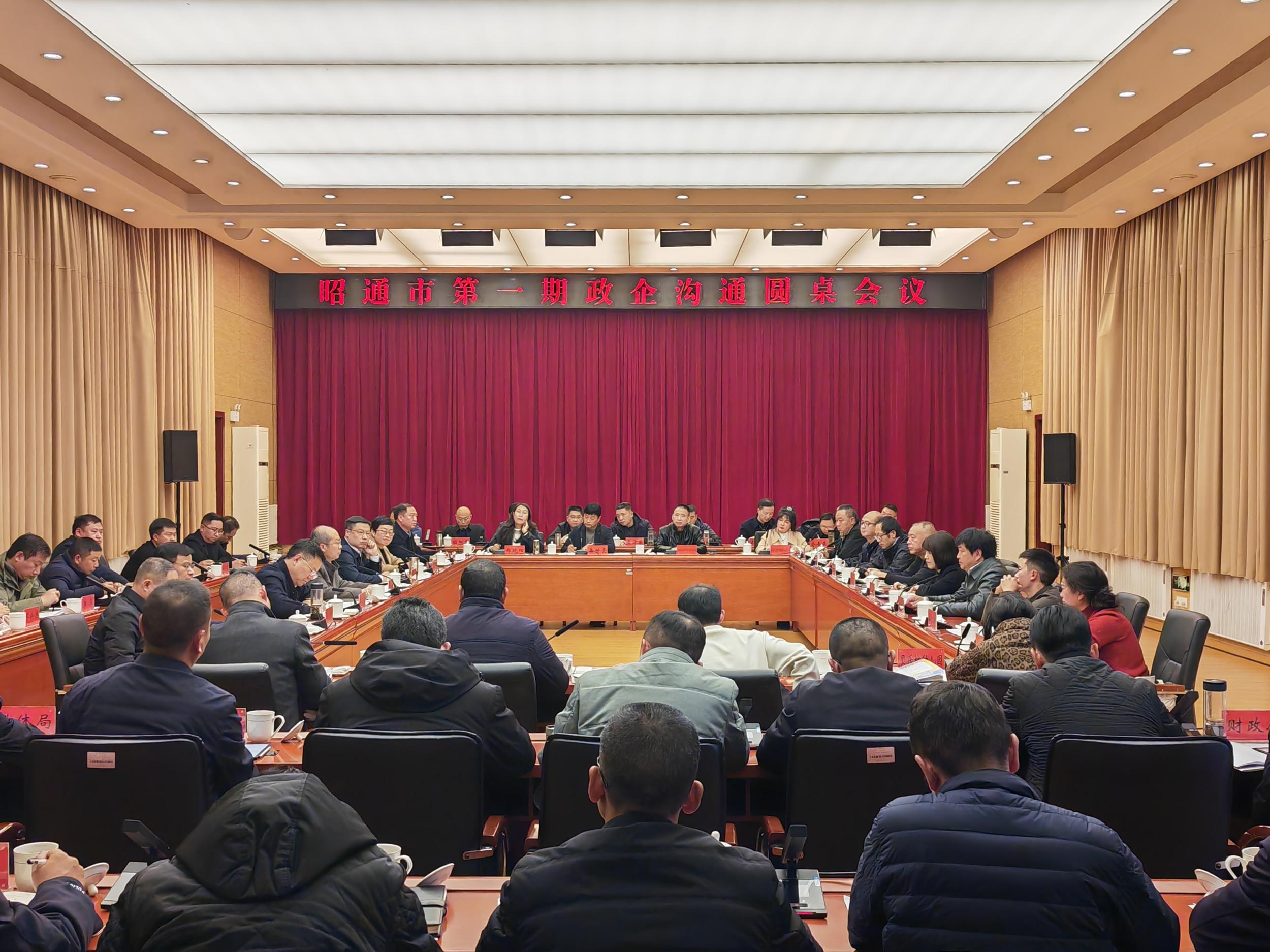 12月15日,昭通市第一期政企沟通圆桌会议在市政府会议室举行。会上,昭通市政府在家班子成员、相关县(区)长、市直部门负责人,13家企业代表,2名营商环境社会监督员,共同学习《中华人民共和国民营经济促进法》、中央和省有关惠企政策以及市委、市政府工作安排,面对面谈诉求、听心声、解难题、话发展。