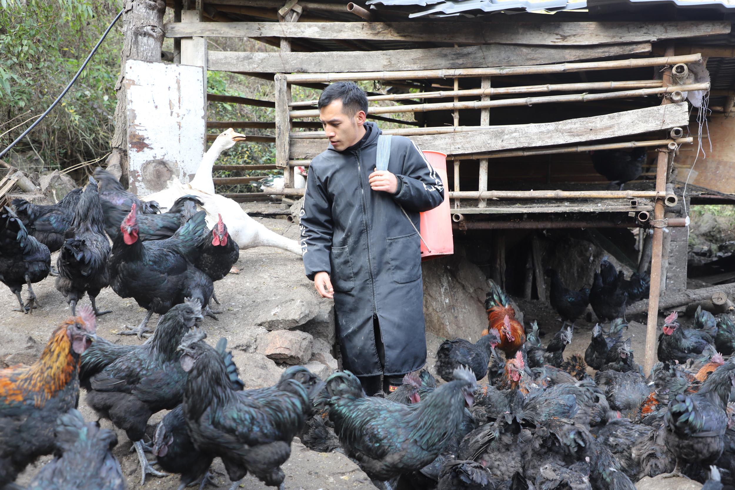 在昭通市大关县高桥镇新开村罩子坪村民小组,90后青年周兴彬用敢闯敢试的拼劲、科学的养殖理念,扎根乡土,走出了一条乌骨鸡生态养殖的致富路,不仅圆了自己的创业梦,也让自家养殖的优质生态鸡走出大山,走俏市场。