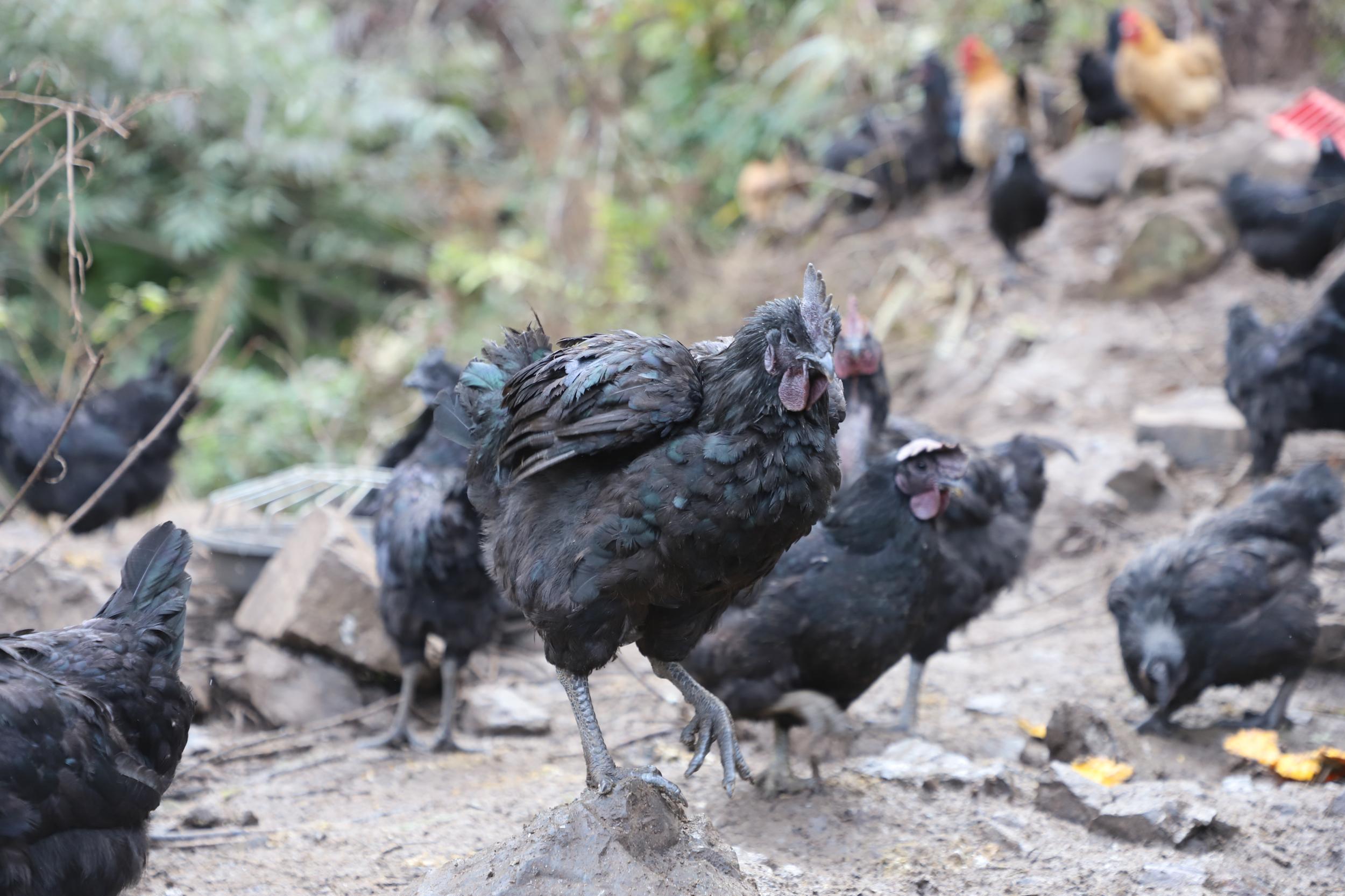 周兴彬介绍:“我们养殖的是原始品种的乌骨鸡,这个鸡从3月份养到现在将近10个月的时间,先后投入了8万元左右。在喂养上,我们坚持早晚主食用粮食喂养,白天让鸡群在山林间自由活动,啄食虫蚁草籽,喝山上的泉水。这种生态养殖的模式,生长周期相对更长,所以到现在才达到出栏标准。”
