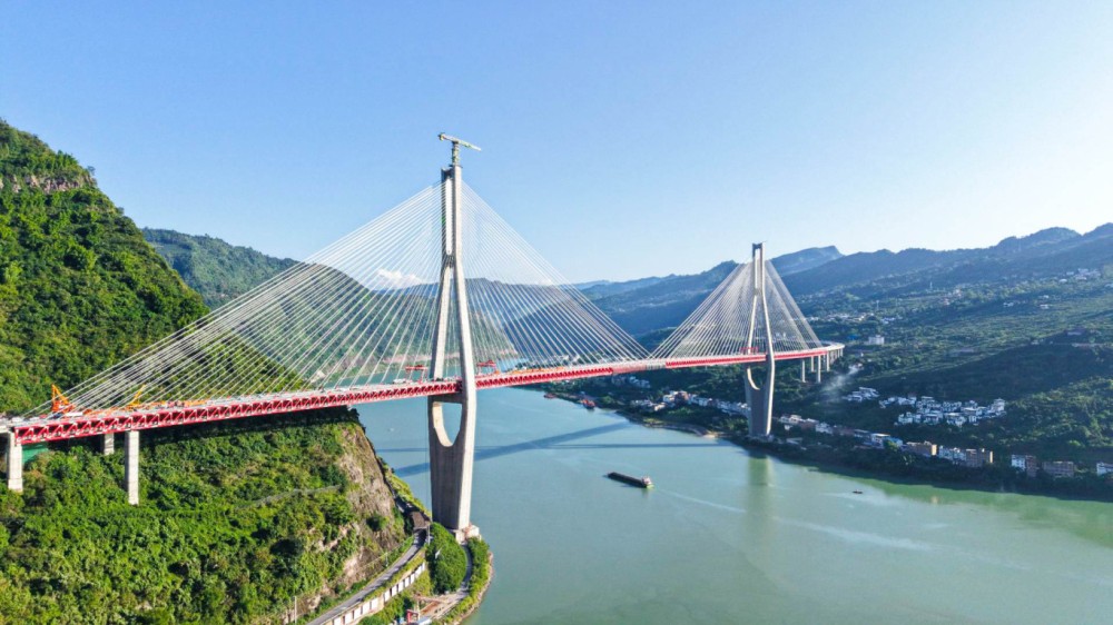 渝昆高铁的隧道与桥梁,是写给滇渝大地的情书。21.17公里的炳辉隧道穿透云贵高原的脊梁,江底牛栏江特大桥的钢索在风中奏响时代的交响——这是中国基建的豪情,更是昭通人“逢山开路”的勇毅。历经近5年艰苦卓绝的奋战,宜宾至攀枝花高速公路绥江支线的重要控制性工程——新市金沙江特大桥现已进入通车前最后的“冲刺阶段”,这座拥有297.51米“滇川第一高塔”的超级工程将连通昭乐高速公路和蓉丽高速公路,为出滇入川再添一条交通动脉;当水富港的货轮鸣笛启航,千万吨级枢纽港口的波涛里,激荡着“万里长江第一港”的雄心,水富港年度货物吞吐量突破1000万吨大关,标志着昭通航运跨越式突破,为云南对外开放和区域经济高质量发展注入了强劲的“水运动能”。