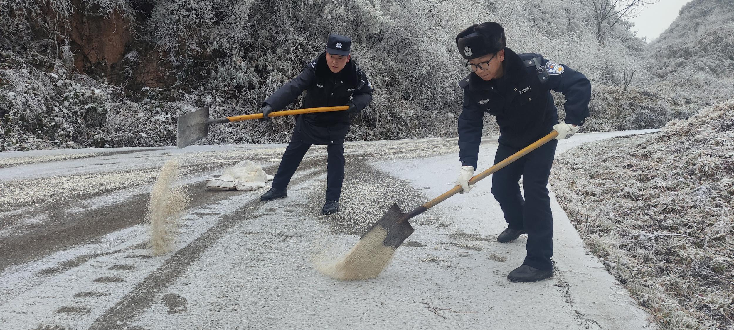 通讯员 周元顺 供图1月2日,昭阳区田坝乡凉山村等路段因持续低温导致道路结冰,田坝派出所民辅警第一时间开展撒盐融冰作业,全力确保道路畅通。在永善县莲峰、茂林等高海拔区域,道路结冰影响车辆安全通行,永善警方及时发布路况信息,开展安全劝导、撒盐融冰等工作,保障群众平安出行。