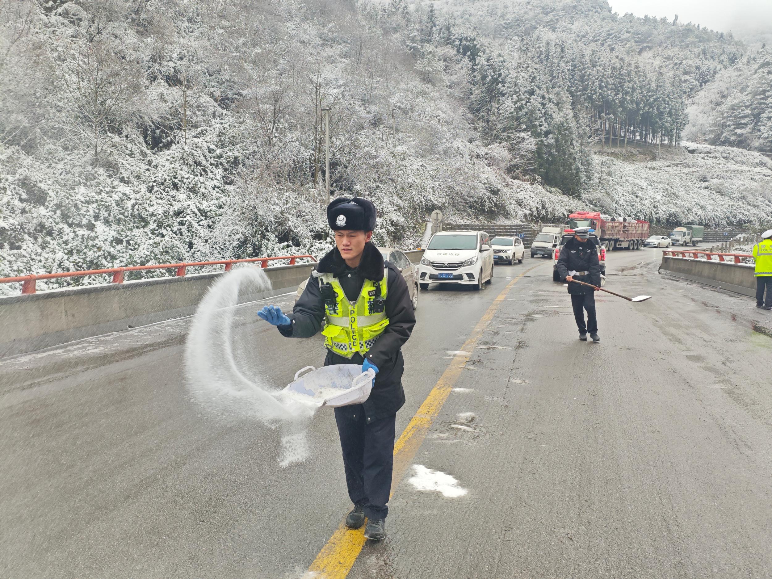 连日来,受持续强冷空气影响,昭通市昭阳、大关、永善等高海拔区域不同程度出现道路覆冰情况。昭通市公安、公路、气象等多部门联动,采取道路巡查、隐患排查、指挥疏导、安全劝导、撒盐融冰、临时交通管制等方式,织密冬季道路交通安全“防护网”,守护广大群众平安出行路。