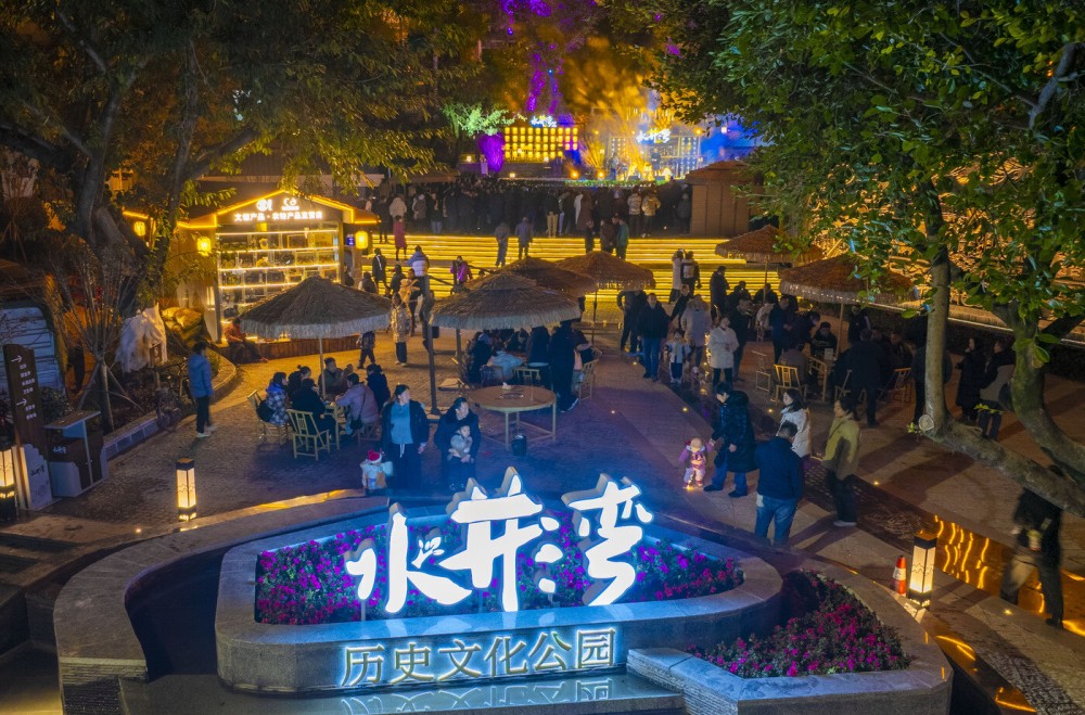 暮色降临,华灯初上,水井湾历史文化公园更添别样风情。园内灯光璀璨、暖意融融,前来休闲游玩的市民络绎不绝。古树下的舞台,本土乐队如约登台倾情献演,悠扬旋律伴随婉转歌声在公园萦绕。现场群众纷纷驻足聆听、沉醉其间。赏乐之余围炉煮茶、品尝美食,婉转的歌声、亲切的闲谈声、纯真的欢笑声交织相融,勾勒出一幅烟火气与文化味相融的幸福生活画卷,尽显城市慢生活的美好。