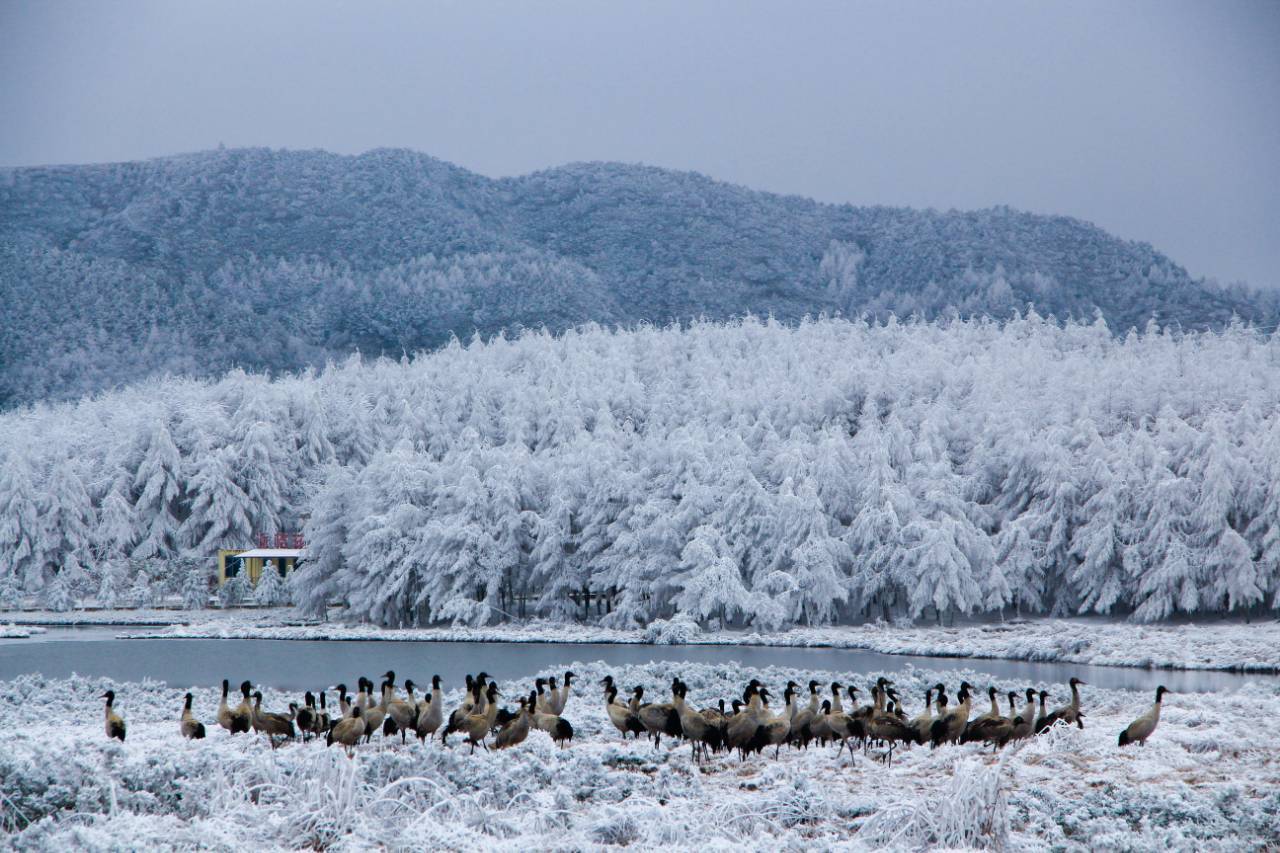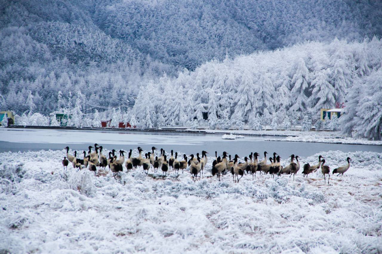 冰霜静谧,鹤影翩跹,构成一幅和谐共生的自然图景。这幅冬日独有的画面,不仅展现了高原湿地的生态魅力,也默默记录着当地在生物多样性保护中坚实而温暖的足迹。