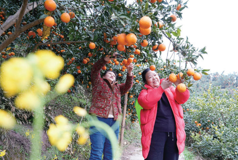 近日,昭通市水富市各镇(街道)、村组群众及时开展农事,忙碌在希望的田野上。图为云富街道高滩村的果农在采摘成熟的黄果柑,供应春节市场。(