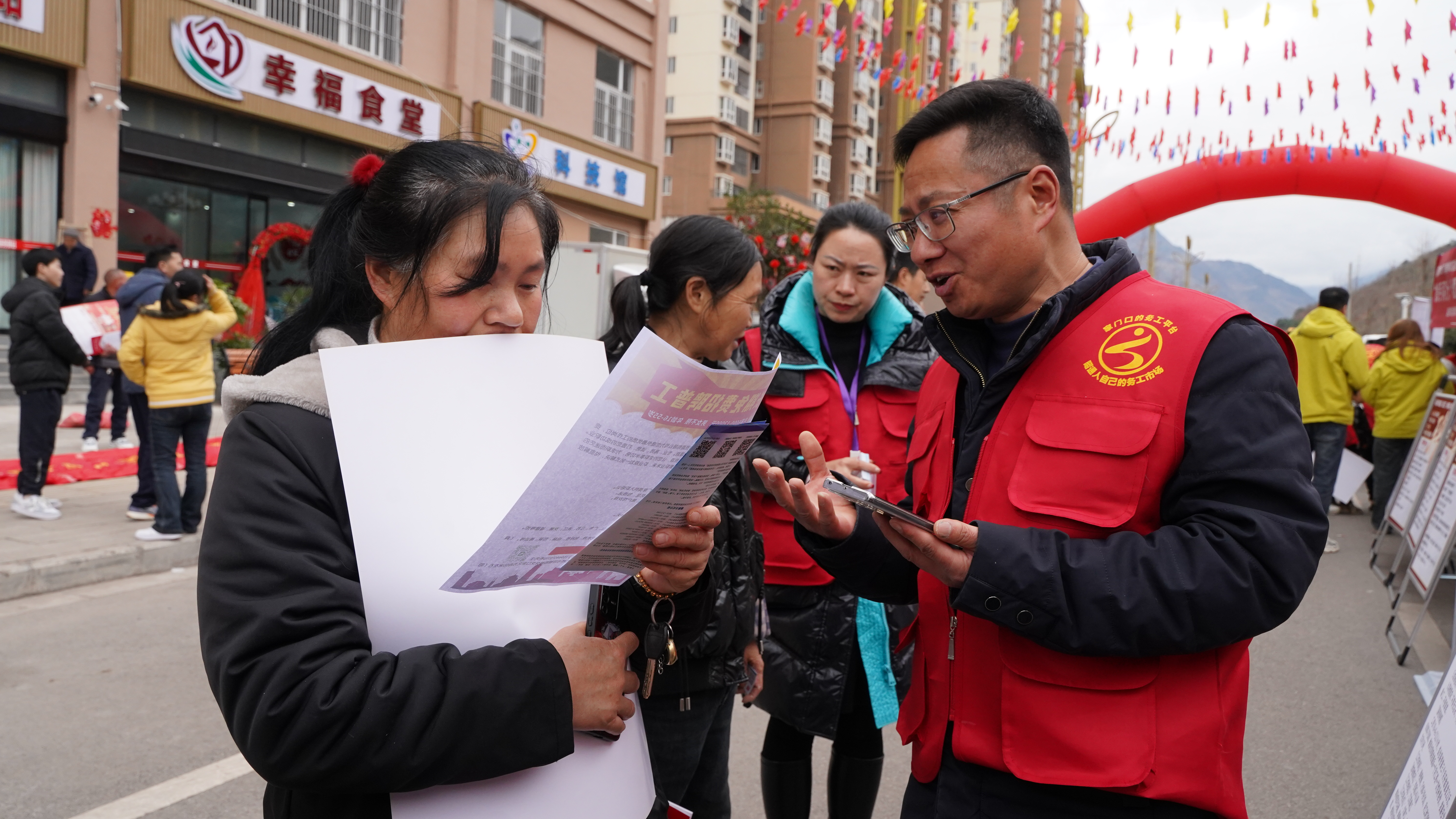 就业服务有温度,民生保障有力度。活动现场,彝良县人力资源和社会保障局联动县总工会、退役军人事务局、中国农业银行彝良支行等10余家单位,通过送法治春联、发放宣传手册等群众喜闻乐见的形式,同步开展普法宣传、政策解读、权益维护等综合服务,面对面为群众普及劳资纠纷、社保政策、家庭维权等知识,以“就业+普法”双向赋能,守护群众合法权益。