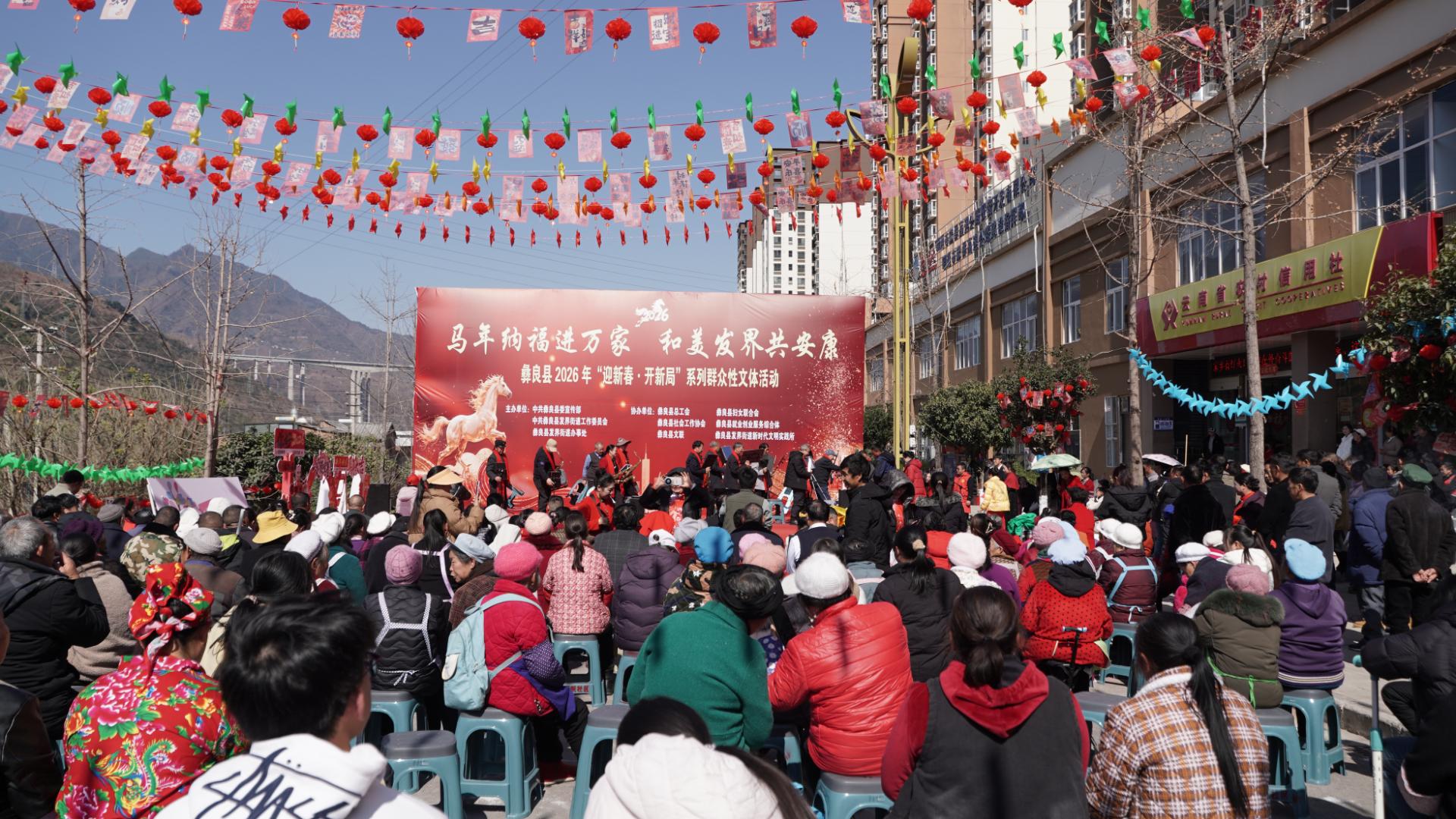 2月9日,昭通市彝良县发界街道热闹非凡,一场以“马年纳福进万家 和美发界共安康”为主题的迎新春活动在此精彩上演。文艺会演、民俗体验、趣味游园等活动轮番登场,欢声笑语此起彼伏,浓浓的年味弥漫在每一个角落,让群众沉浸式感受浓浓的节日氛围,共同迎接新春佳节。