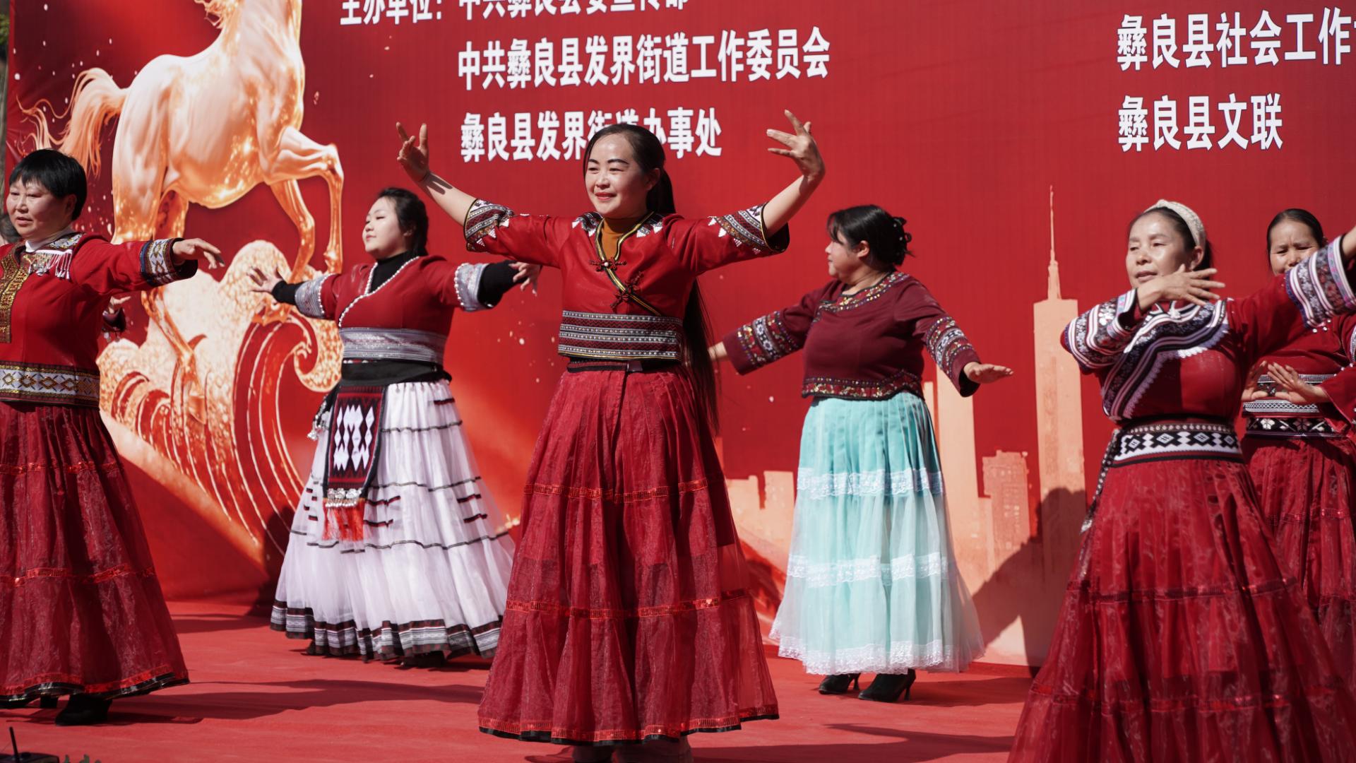 文艺会演环节精彩纷呈。来自新场社区、扬帆社区、前进社区、团结社区的居民,联合彝良县自由飞翔歌舞乐队、县文联音乐舞蹈协会等团体演职人员,带来舞蹈《过年了》《草帽舞》《祖国你好》、器乐合奏《草原民歌联奏》、武术表演《中国功夫》、歌曲《喜事盈门》《红歌联唱》等10余个节目,充分展现了安置区群众多才多艺、积极向上的精神风貌。