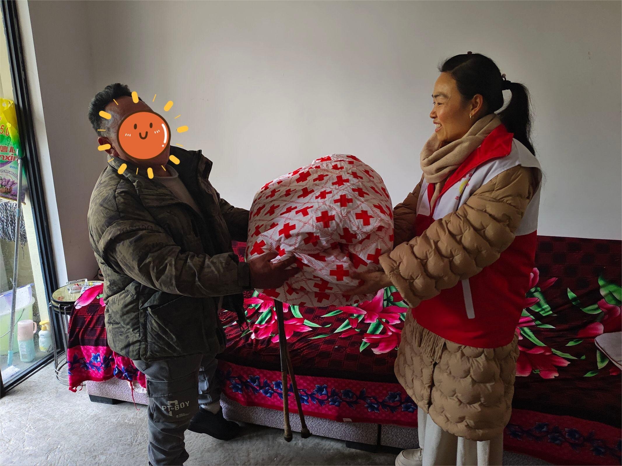 活动中,县红十字会工作人员为困难群众送去棉被、毛毯、碗、筷子、袜子等生活物资,并与他们倾心交谈,询问身体状况、生活情况以及生活中存在的困难,叮嘱注意防寒保暖和用水、用电安全,增强安全意识和提升自我防范能力。