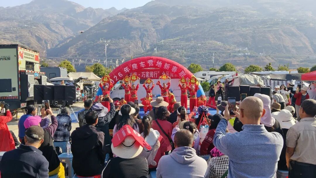 当天,新春慰问文艺演出在营地火热开演。演出在舞蹈《中华全家福》中拉开序幕,歌曲《大中国》《巧家巧》唱响家国情怀与地方风采,新疆舞、相声、小品、二胡独奏、诗朗诵等节目轮番登场。节目内容“接地气”、形式多样,既有浓郁的地方特色,又充满新春喜庆。现场掌声与欢笑声不绝于耳,旅居游客在歌舞声中感受巧家人的热情好客。
