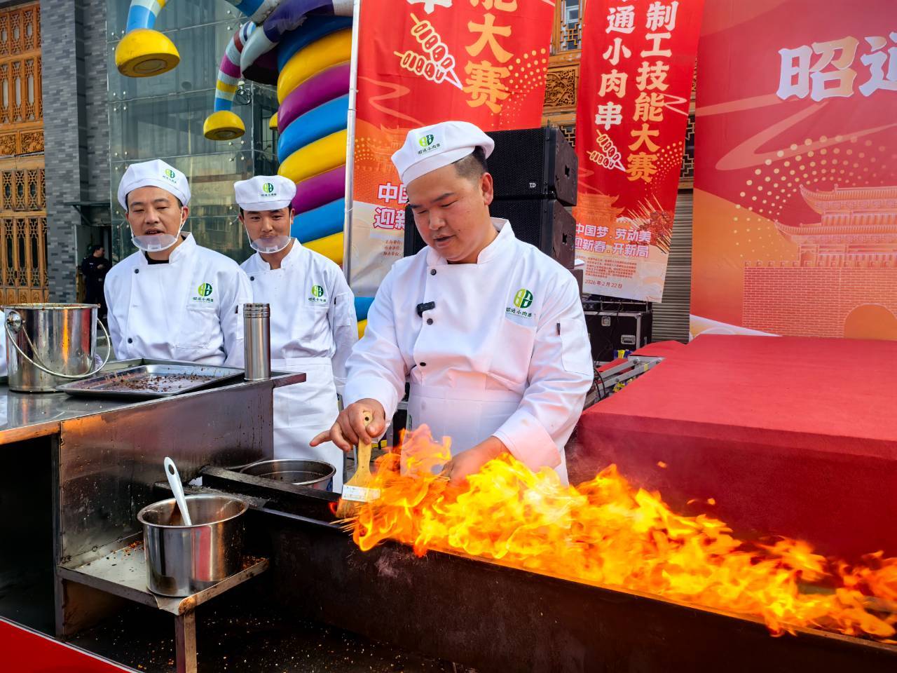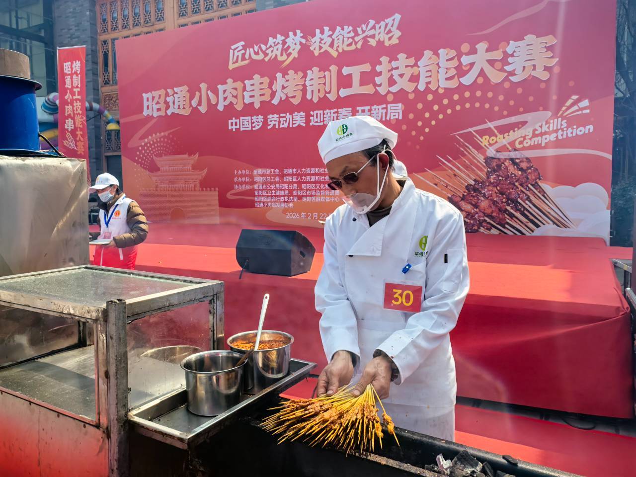 2月22日,新春氛围正浓,昭通古城抚镇门广场香气四溢、人潮涌动。“匠心筑梦 技能兴昭”2026年昭通小肉串烤制工技能竞赛火热举行,60名烧烤高手同台竞技、以串会友,八方游客慕名而来、现场尝鲜,在烟火升腾中感受昭通美食魅力,共庆马年新春。
