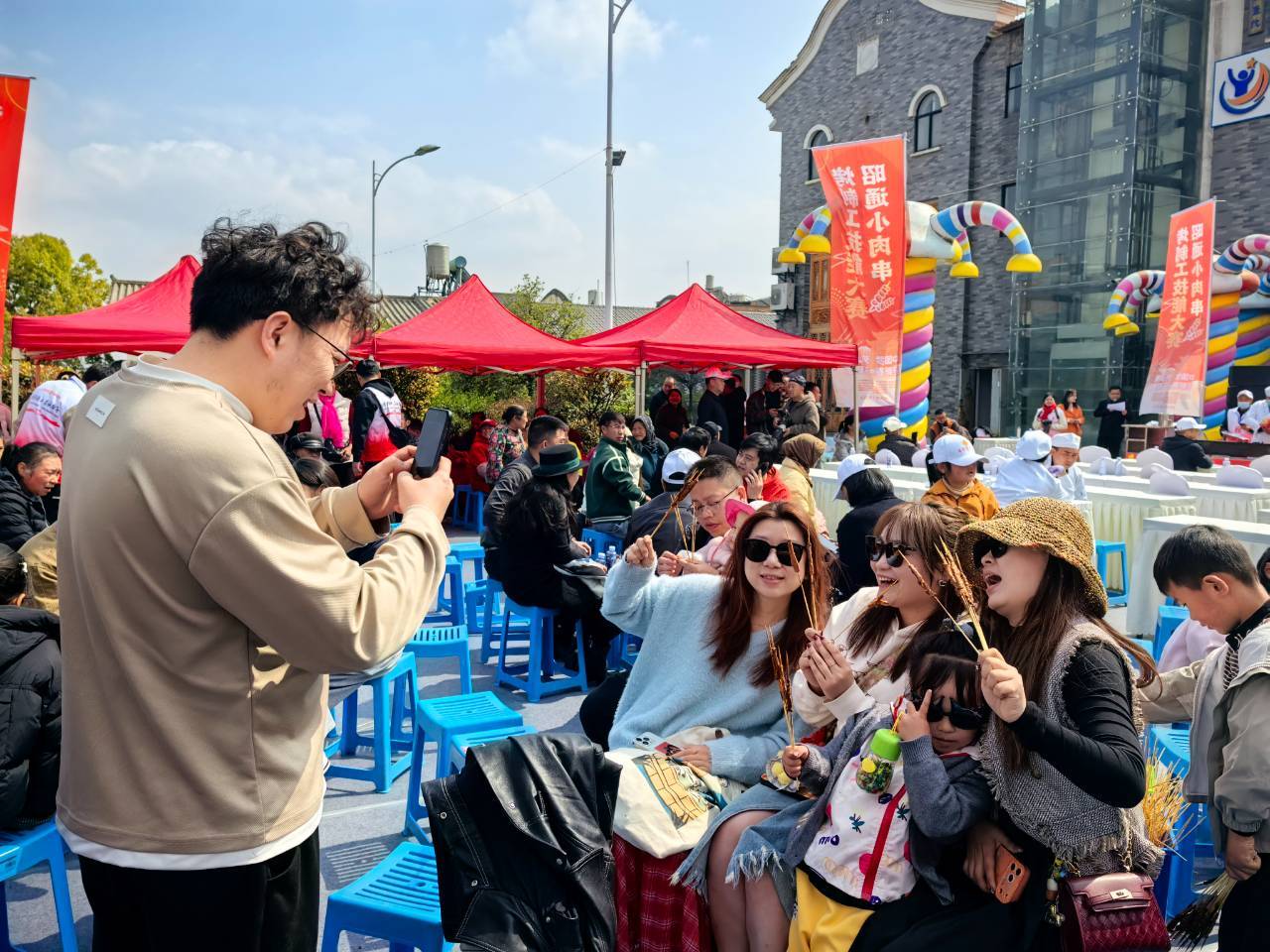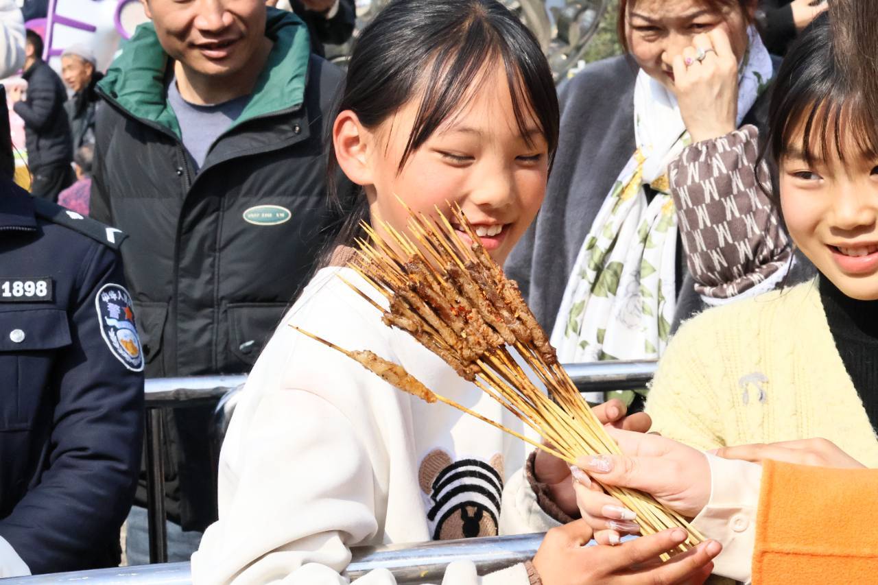来自成都的游客魏巧刚到昭通古城,听说有比赛便匆匆赶来围观。她和朋友们在比赛现场拍照打卡,笑声不断。她说:“这边的新年氛围很浓厚,非常热闹。昭通小肉串味道也很不错,挺好吃的。”