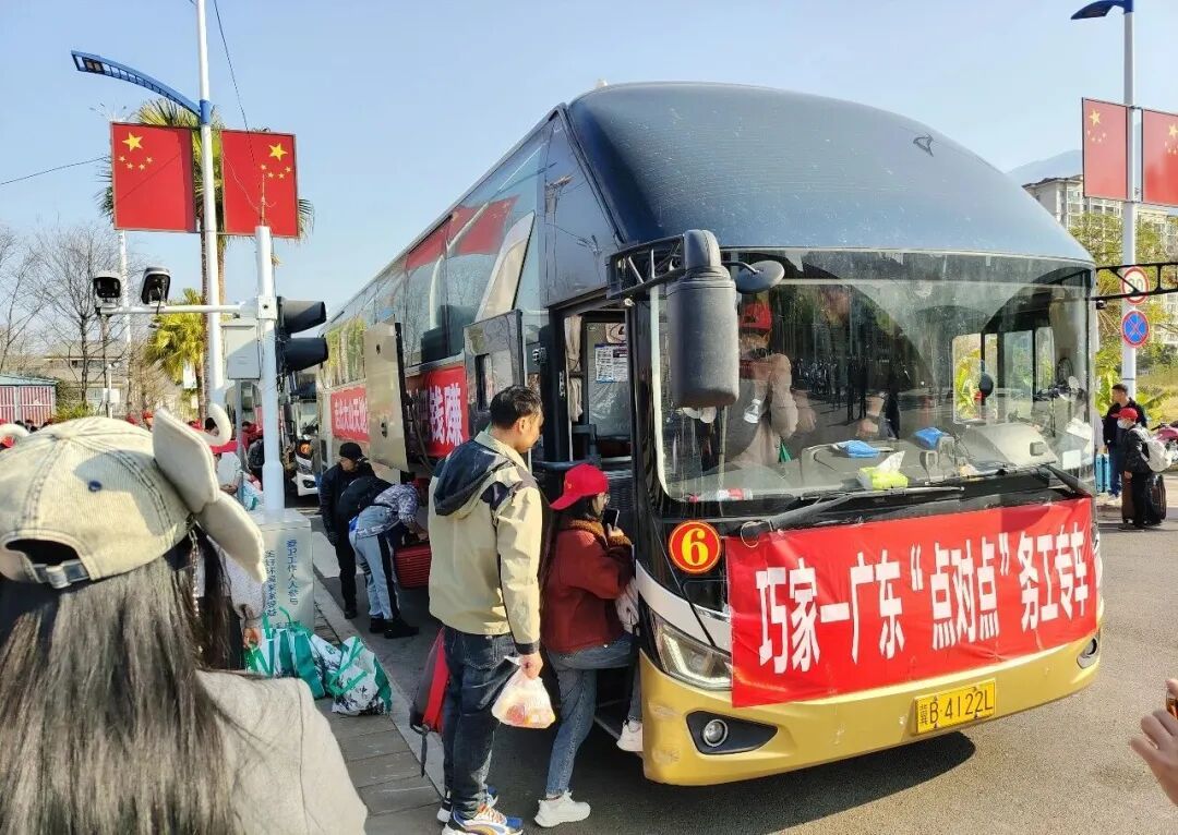 据了解,此次集中输送服务采取“免费大巴+自驾出行”的方式。全县共有1262名务工人员通过此次活动集中返岗,其中100名务工人员乘坐2辆免费“直通大巴车”统一出发,其余1162名务工人员通过自驾车队的形式同步踏上返岗征程。