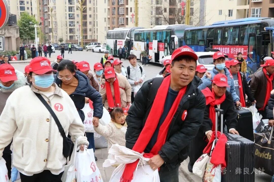2月22日,彝良县2026年春节首批“点对点”外出务工集中欢送仪式在发界安置区温情启幕。全县共8236名务工群众踏春出征,奔赴浙沪苏粤等地就业。