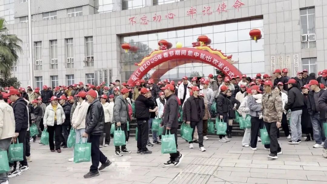 2月22日,绥江县2026年春节期间劳动力集中输出欢送仪式在中城镇举行,368名务工人员带着家乡的祝福“温暖”返岗,开启新一年务工创收的新征程。