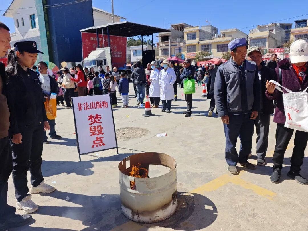 活动设置“非法出版物集中焚毁”核心环节,现场公开焚毁收缴的盗版书籍等各类非法出版物340余册,以直观有力的举措彰显鲁甸打击“黄”“非”违法犯罪的坚定决心,形成强烈警示效应。