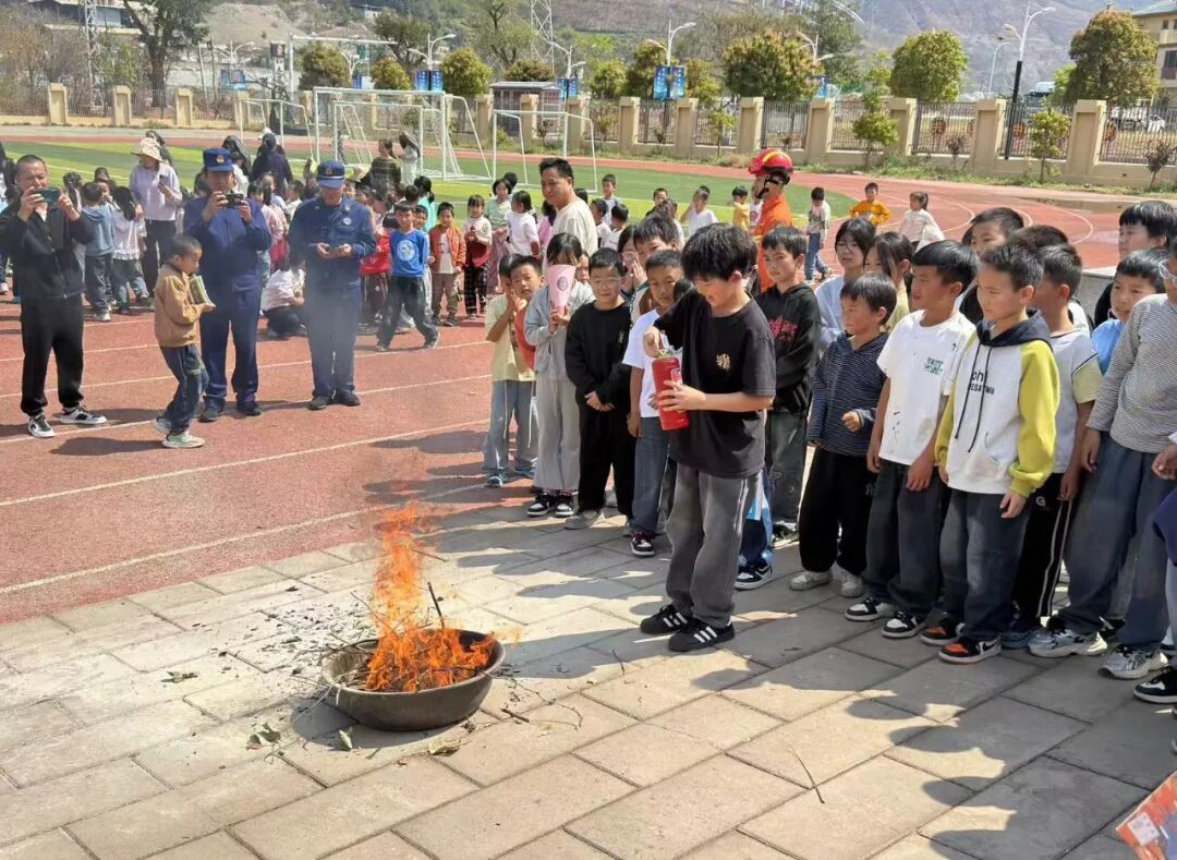 “哇哦,好厉害!”,在一声声夸赞声中,消防员们带着笑意利落扑灭火堆,随后呼唤小朋友上前,手把手教如何正确使用灭火器。“提、拔、握、压”四字口诀通俗易懂,在消防员耐心指导下,参与的小朋友迅速掌握技巧,在欢呼声中顺利扑灭火焰。
