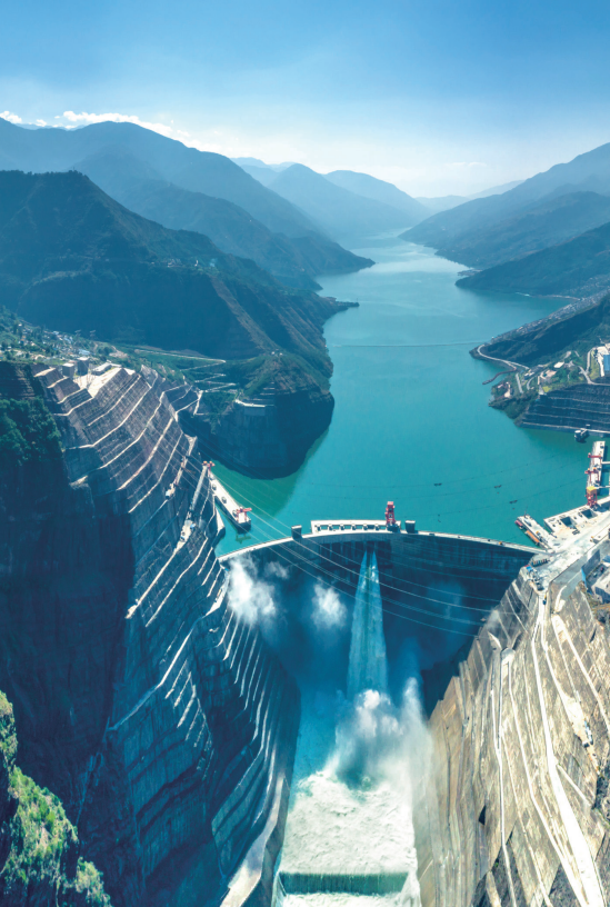 那天,我们行至此处。仅次于三峡水电站、世界第二大的白鹤滩水电站的蓄水,已把峭壁上高高的《安澜吉水》的诗篇淹没于江水之下。金沙江变得风平浪静、清幽。尽管当年的悬崖峭壁在水之中,在水之上,两岸的高山依然巍峨。只不过,江水把它的影像收纳其中。