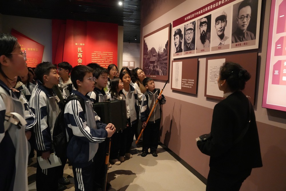 走进扎西会议会址,古朴的木质院落静谧庄重,阳光透过窗棂洒在斑驳的木柱上。来自周边县市的研学团队围站在展厅内,聆听讲解员讲述那段烽火岁月。“1935年2月,红军长征进驻威信,在这里召开的扎西会议为长征胜利指明了方向。脚下的每一寸土地,都藏着滚烫的红色记忆。”讲解员饱含深情的讲述吸引广大游客驻足聆听。