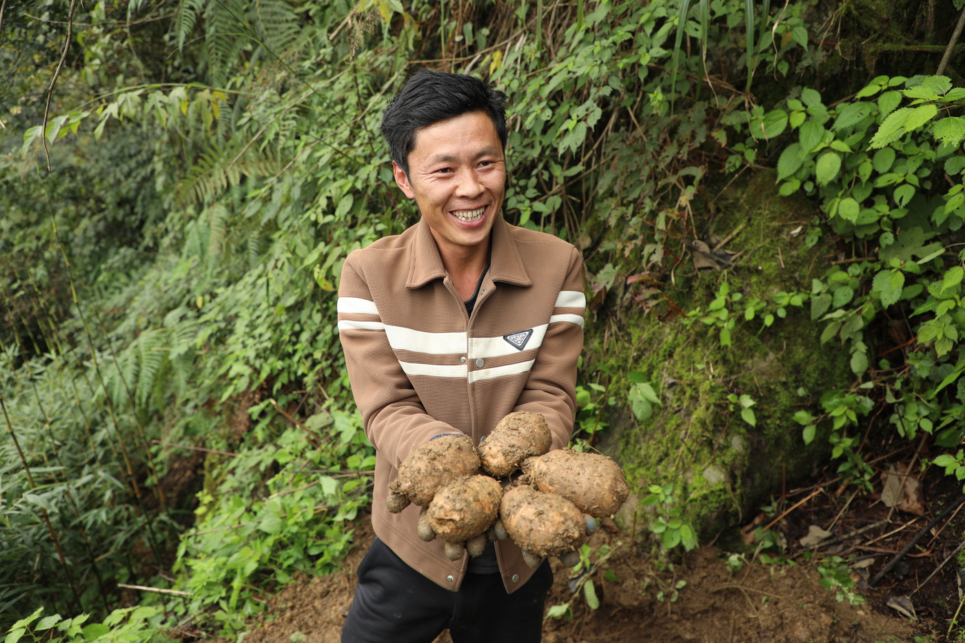 村民郑佐全也尝到了天麻产业的甜头。几年前,他还在外打工,难以照顾家中老人与孩子。看到乡亲们靠种天麻挣了钱,他也果断返乡试种,搭上了增收致富的“早班车”。望着刚从土里挖出的一个个“金宝贝”,他满脸喜悦地向记者展示刚挖出的天麻:“你看我这天麻,不仅个头大,产量也高。我今年种了三四亩,收入有五六万元。”