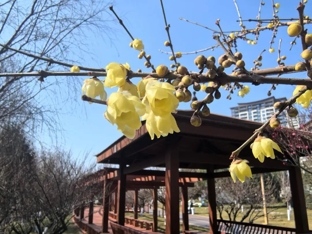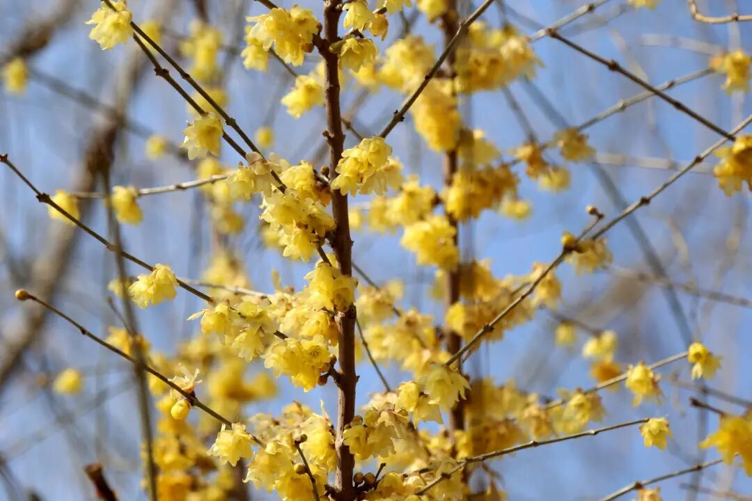 乌蒙水乡公园作为昭通的“城市会客厅”,坐拥开阔水体,园内花草树木品类丰富、布局精巧,四季皆有景致可赏,是当地群众休闲、健身、娱乐的好去处。公园内的蜡梅主要分布在利济河北沿线,每到寒冬腊月,金黄的花瓣便在寒风中傲然绽放,香气浓郁、沁人心脾,为城市增添了一抹温暖亮色。漫步公园,蜡梅与碧水、亭台相映成趣,不少市民驻足拍照、凝神品香,尽情享受大自然的馈赠。蜡梅花期将持续至春节前后,喜爱蜡梅的市民朋友不妨前往公园,邂逅这份冬日限定美景。